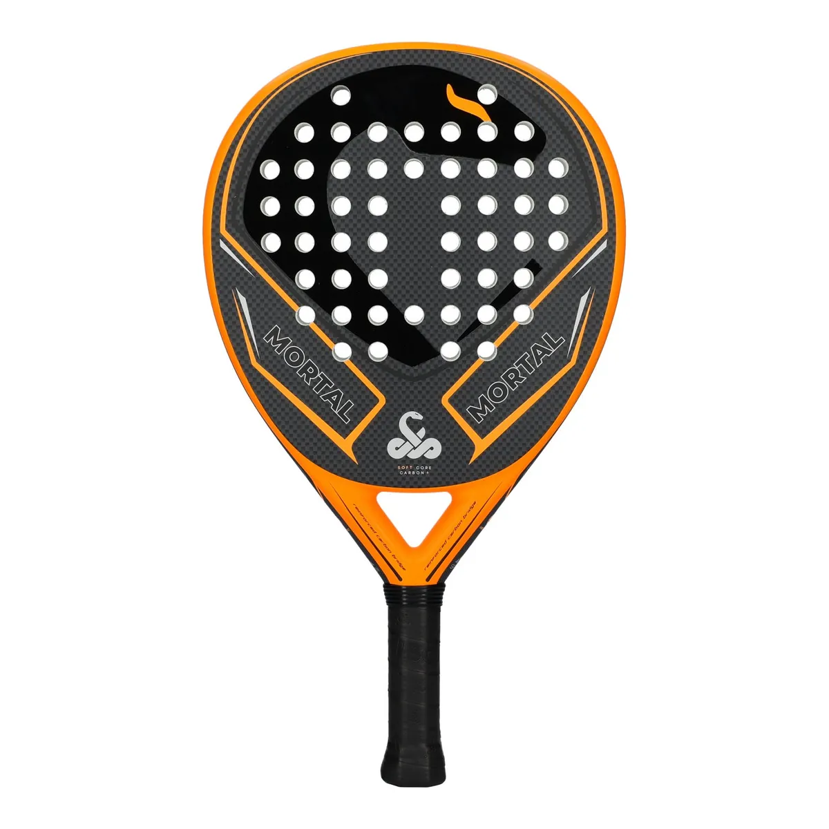 The Vibor-A Mortal Fiber is a Vibor-A teardrop-shaped padel racket that blends control and power through an oversized profile aimed at advanced players. It pairs a carbon fiber face with a soft EVA core and a medium balance to deliver a forgiving, controllable feel while still allowing punchy attacking shots.