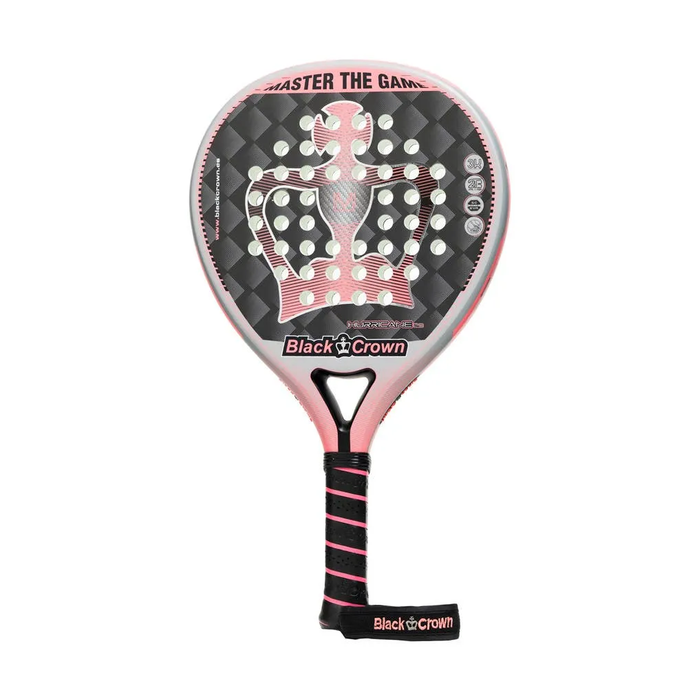 The Black Crown Hurricane 2.0 2023 is a round, low-balance control padel racket from Black Crown released in 2023. It pairs glass-fiber faces and a Super Control EVA core with a medium-soft, smooth surface to deliver forgiving, precise touch for experienced players who value placement and handling over raw power.