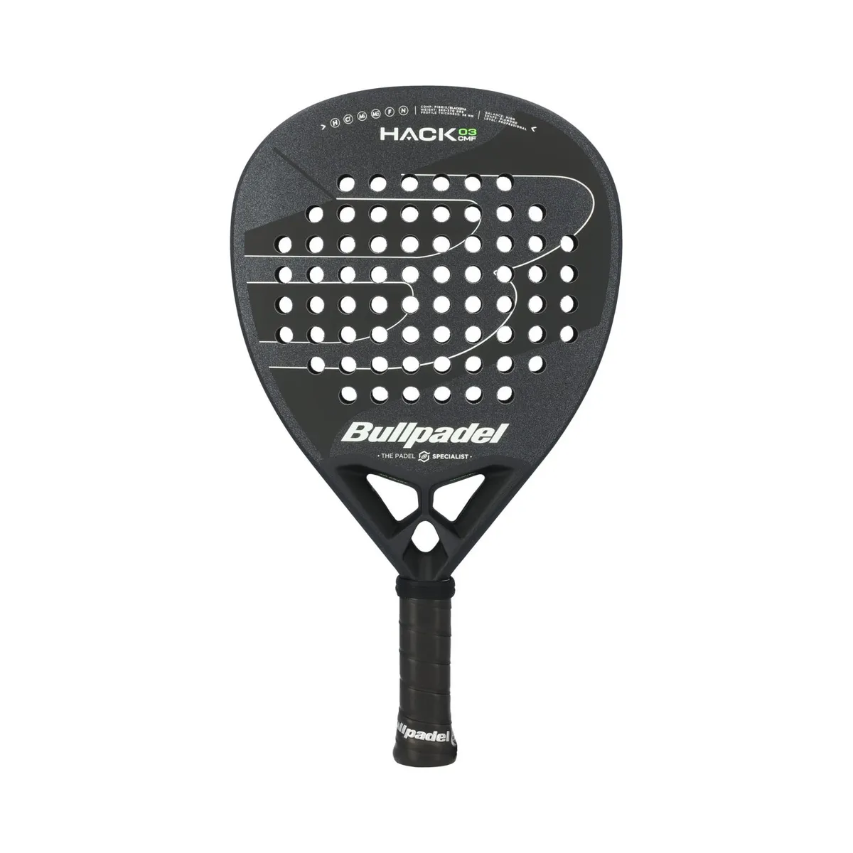 The Bullpadel Hack 03 Comfort X Series (2023) is Bullpadel’s diamond-shaped, high-balance padel racket that leans clearly toward an attack-oriented playing profile. It pairs a Fibrix face with a Black EVA core, medium hardness and a rough surface to deliver punchy power while still offering workable stability for experienced players.