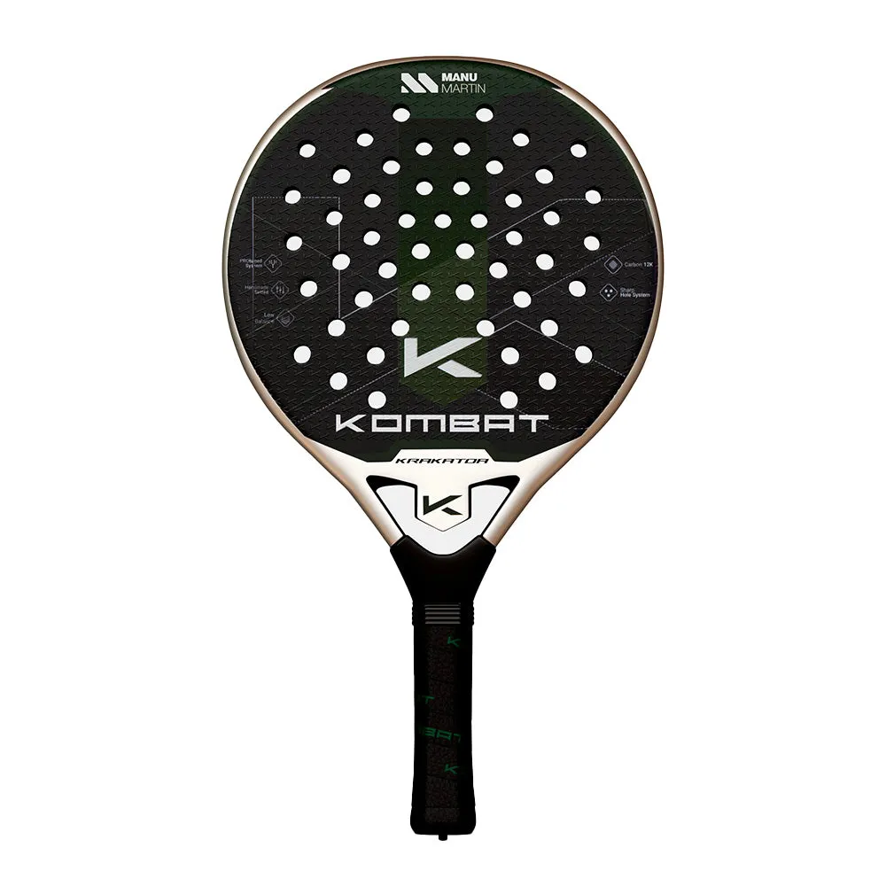 The Kombat Krakatoa 2025 Manu Martin is a 2025 teardrop-shaped control padel racket from Kombat that prioritizes precision and a centered sweet spot. Its medium-high balance, 12K carbon face and medium-hard Black EVA core give it a stable, control-first feel suited to experienced players who value accuracy over raw power.